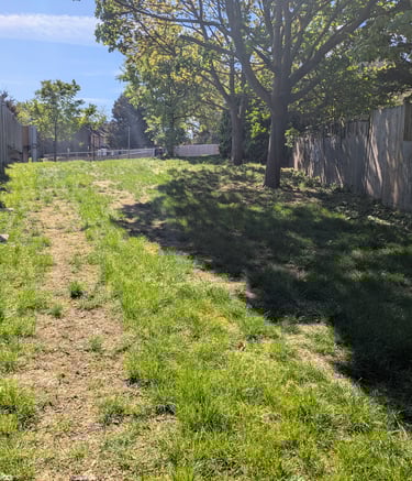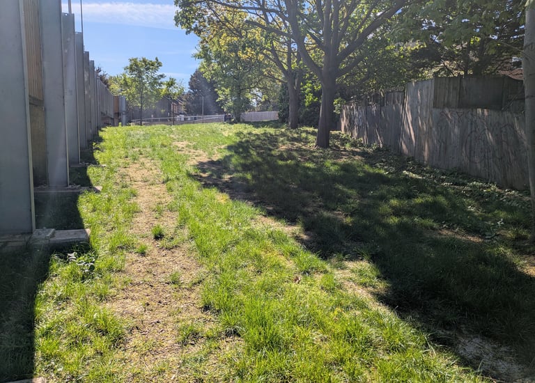 Our plans for this site are broadly the same as for the land at Siebert Road. That is, we will spend the summer of 2026 getting the ground ready for planting, litter picking and surveying the existing biodiversity, before planting native hedging parallel to the fence and bulbs in and among the trees in the autumn/ winter months.